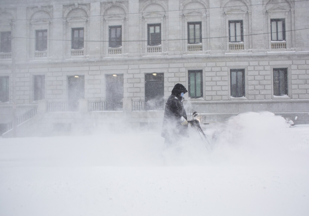 Dan Arsenault clears a sidewalk in front of the Cumberland County Courthouse, where he works in the maintenance department. Derek Davis/Staff Photographer