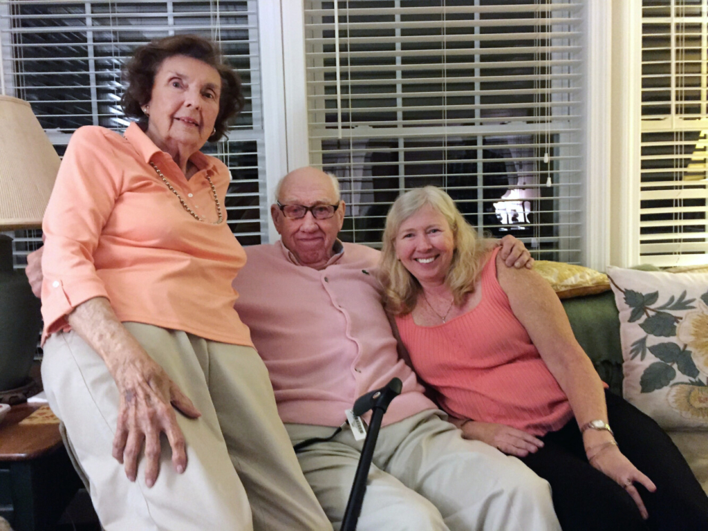 Loretto Thompson, posing with Gloria and Roger Sundin, believes that Roger Sundin save her father’s life when their plan went down in the North Sea in 1945. Photo courtesy of Roger Sundin Jr.