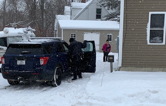 Three police cruisers, two with blue lights flashing, were parked at the snowy scene at 92 Western Ave. just after noon Saturday and a detective arrived around 1 p.m. following the incident, which occurred sometime around noon.