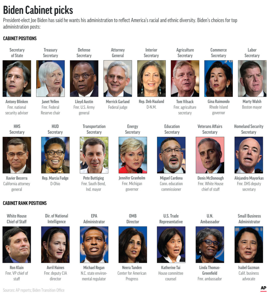 It’s a sharp contrast to President Trump’s Cabinet, which was dominated largely by white men with little experience in Washington. Biden’s aides say that was one of the goals he set in filling out his Cabinet: to signal that his presidency means a return to competent, stable leadership government.