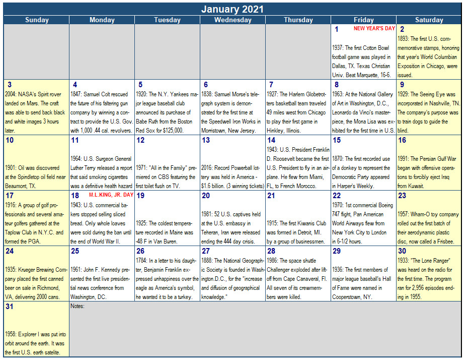 “I looked through several books from our library, and there are a lot of events that are recorded that are just by the year, but not by the day,” Breton said. “I just decided to go U.S.-wide and just tried to find interesting events. Some are well known and others aren’t.”