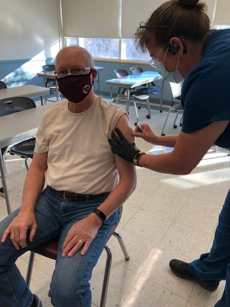 Connie Winship, 72, said when they arrived on the KVCC campus, they were directed to the building where the vaccination clinic is located. Once there, their temperatures were taken and they were asked questions related to COVID-19. They were vaccinated in a room away from others, and they said the shots were painless. Afterward, they were required to stay for about 20 minutes.