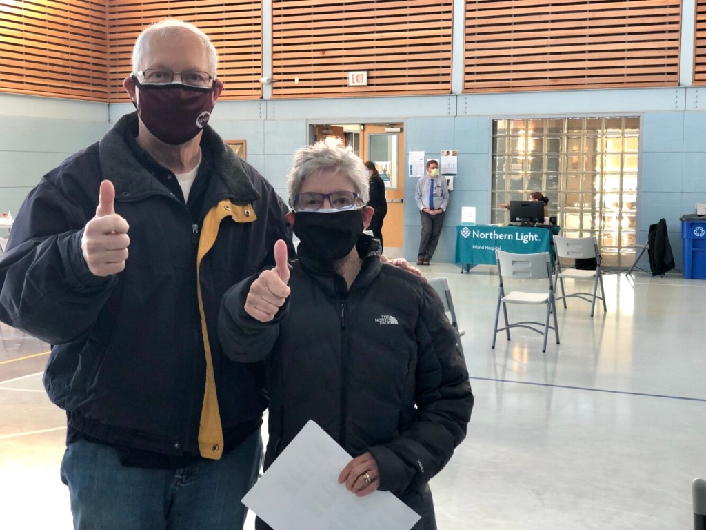 The couple said later Tuesday in a telephone interview the process was quick and easy. They said they had to wait about 10 minutes to get vaccinated. Ray Winship, 73, said the couple made appointments last week for vaccinations after he received an email from Northern Light Inland Hospital, where his doctor is located, notifying him of the clinics.