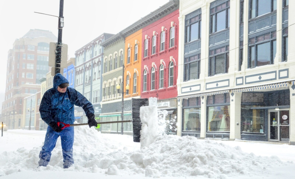 Pete Bolduc shovels snow from a Water Street sidewalk at 7:46 a.m. Feb. 13, 2019, in Augusta. Bolduc said that he shovels sidewalks for nine buildings and takes care of several more on Water Street. On Thursday, Augusta police asked for the public’s help after Bolduc was reported missing. Joe Phelan/Kennebec Journal file