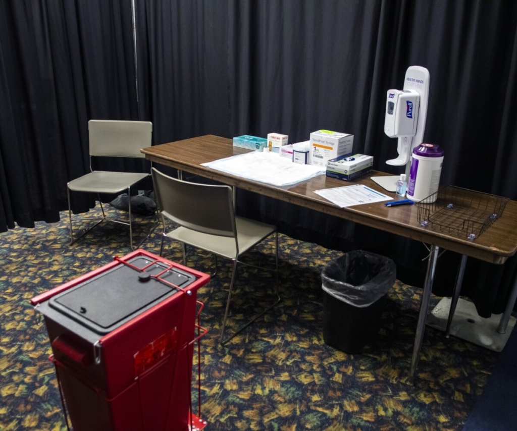 The space set aside for the vaccination clinic is contained on one level in the Civic Center’s north wing. Signs in the parking lot direct those seeking their shots to the entrance, where they will be temperature screened, provided a mask if they need one and directed to an intake room.