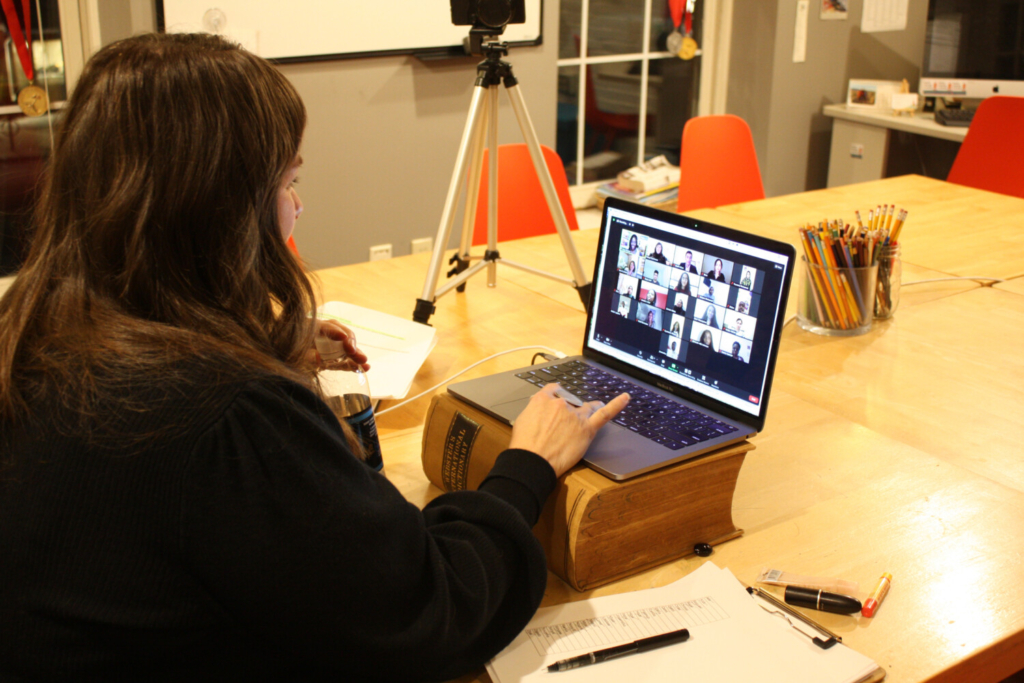 To close the call, the students asked the former president to participate in a Telling Room tradition that involves creating a community story by going around the room and having each participant offer a word that describes their time together. The students went first, using words like remarkable, dazzling, miraculous, grateful and ineffable.