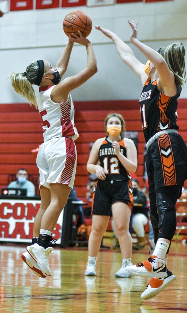 Lizzy Gruber led Gardiner (8-2) with 11 points, 17 rebounds and three blocks, while freshman Taylor Takatsu added 10 points. Alyssa Redman scored 15 points on five 3-pointers to lead Cony (4-6), while Julia Reny scored 13 and Kiara Henry had nine points, 10 rebounds and three steals.