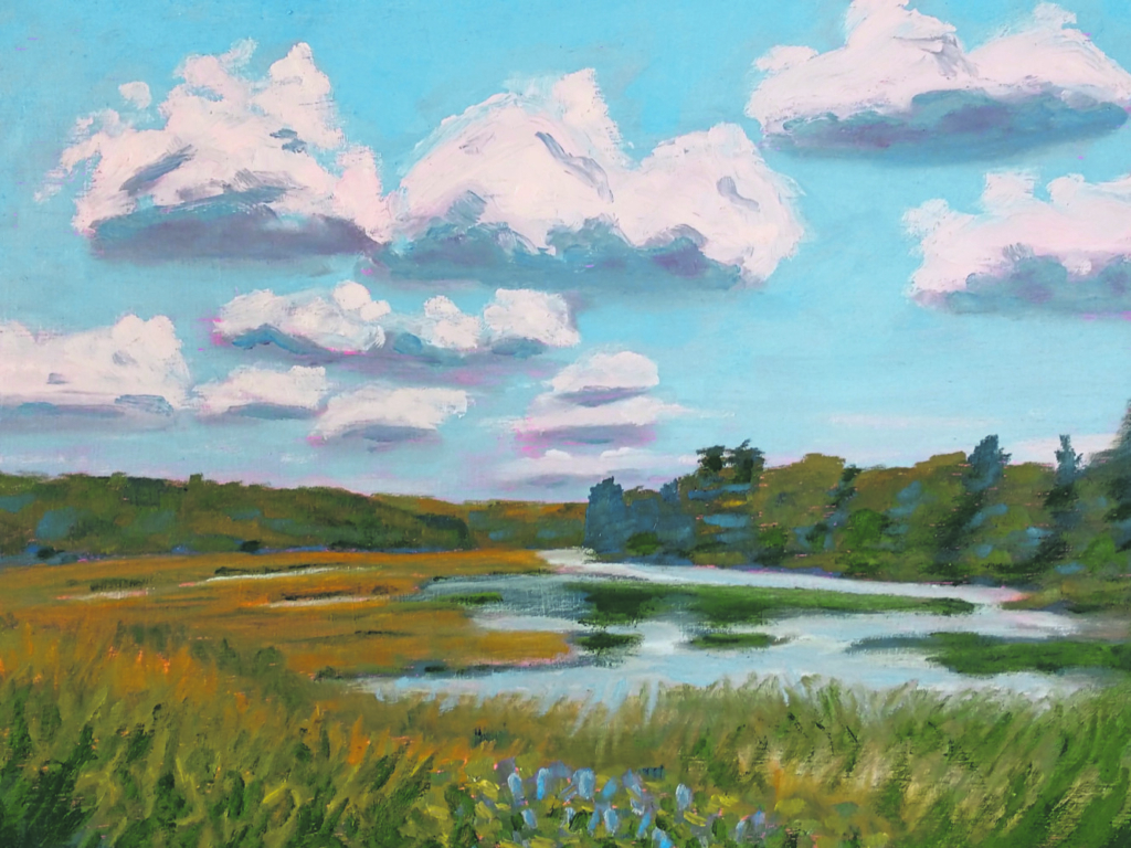 McVey retired after 40 years working in the field of commercial art, moving to Auburn, where she finished her art education with a BFA in 2012 from the University of Southern Maine in Gorham. Presently working at her Pond Lily Art Studio, she has exhibited her work at the Main St. Art Gallery in Norway, the Greenwood Gallery in Auburn as well as many local art fairs while also teaching several art classes at Central Maine Community College. She has expanded her art studio time to include more landscape drawings and paintings of Maine’s scenic vistas.