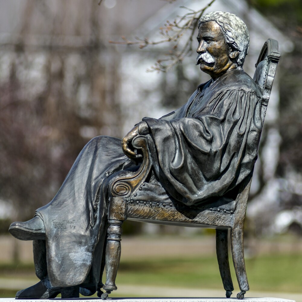 The statue of Melville W. Fuller, who was born in Augusta in 1833 and served as the eighth chief justice of the Supreme Court of the United States, outside the Kennebec County Courthouse in Augusta. Joe Phelan/Kennebec Journal Buy this Photo