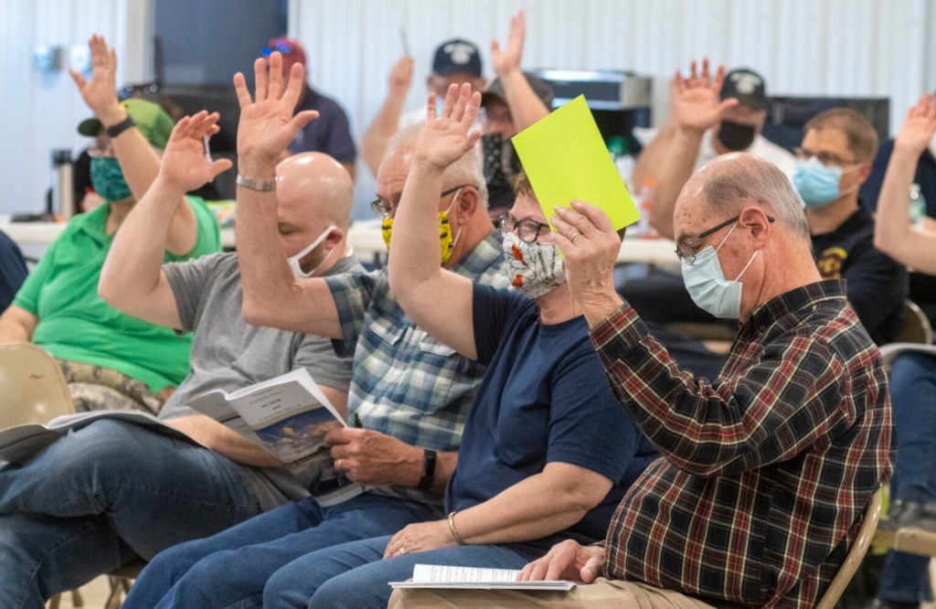 WEST GARDINER — When the votes on spending were all done in the West Gardiner Town Garage at Saturday’s Town Meeting, the 60 town residents had to vote one more time.