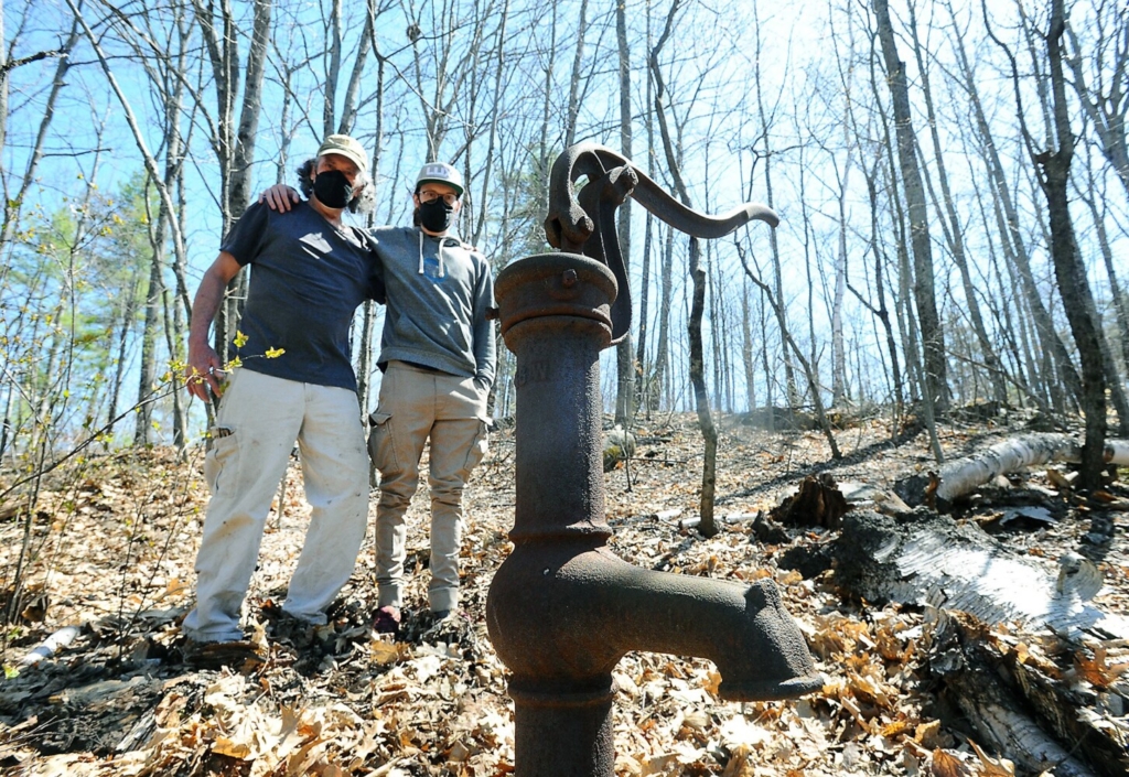 Mark Robie, left, and his son, Leon, hope to revive the family’s historic farm by starting a marijuana growing operation there. The Winslow farm has been in the family about 200 years. The men, seen Wednesday, stand near a pump that has been in use for over 100 years at the farm. Rich Abrahamson/Morning Sentinel Buy this Photo
