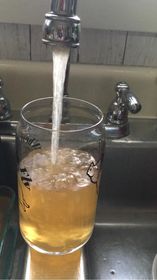 Tap water runs brown Monday because of a damaged water main on Benton Avenue in Winslow. Photo courtesy of Ann Ball