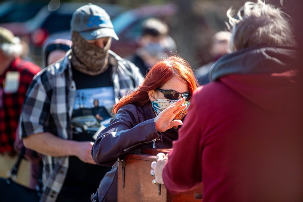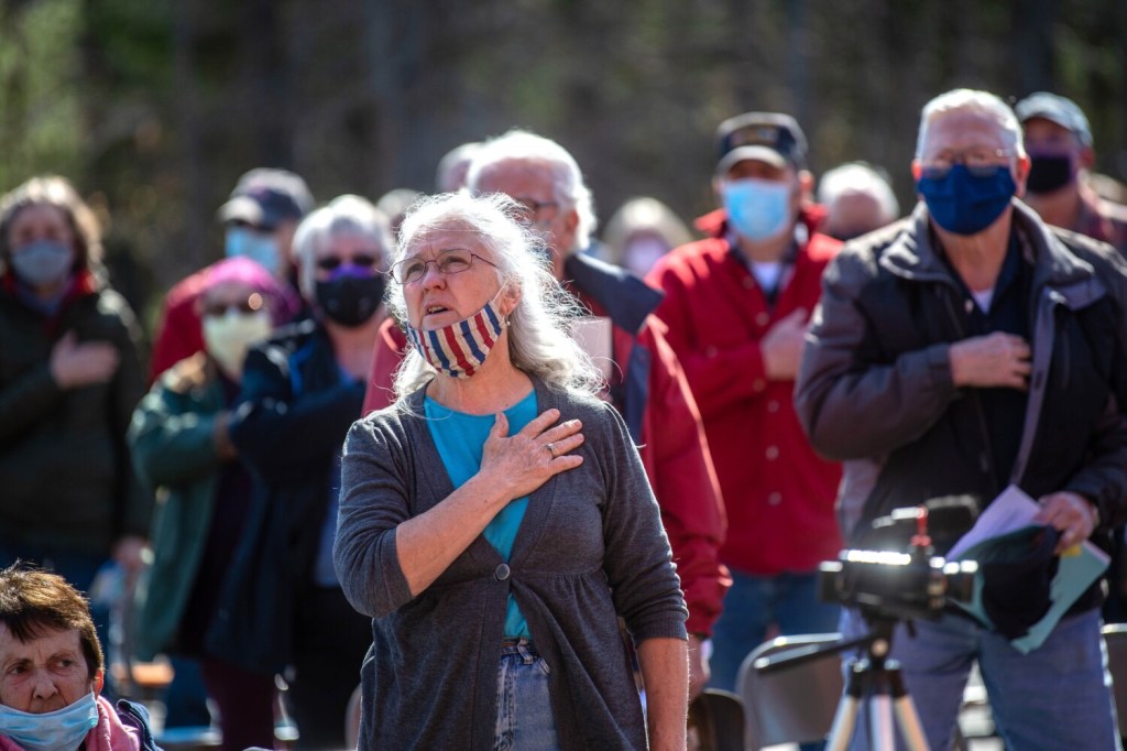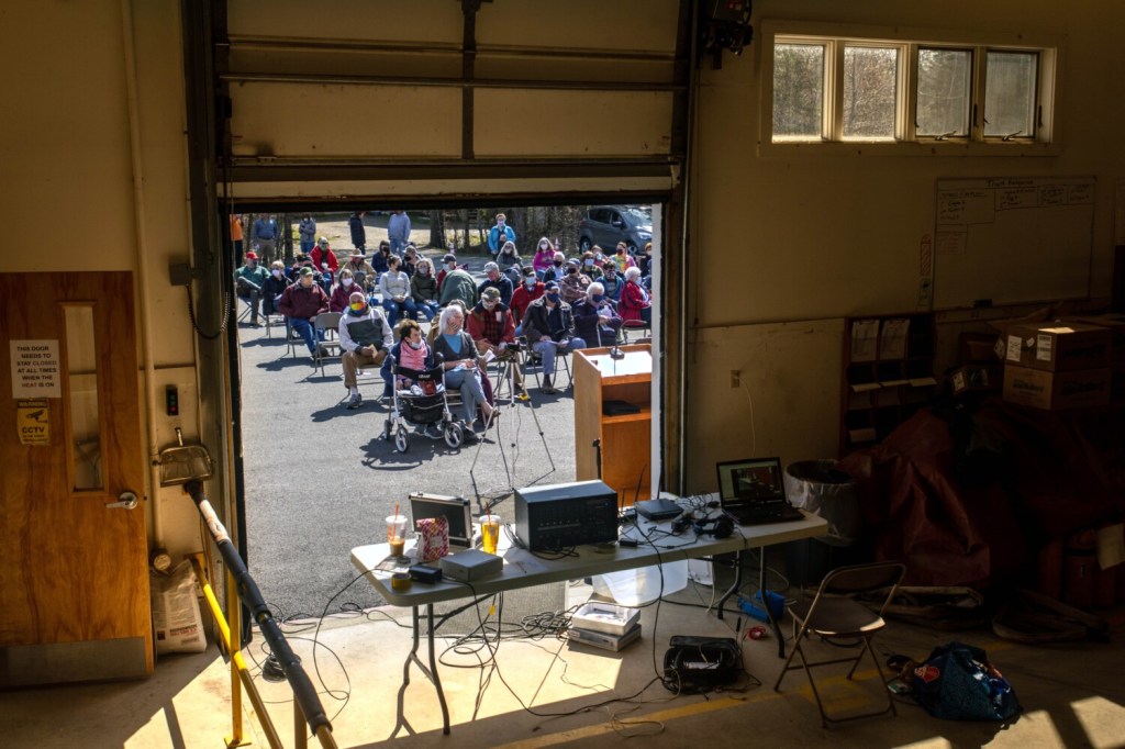 Saturday’s meeting took place outside the fire station, after it was delayed for a week due to concerns of snow. Because of the pandemic the meeting was held outside, and chairs were spaced out across the parking lot. Over 100 residents attended, and while some wore face masks, others did not.