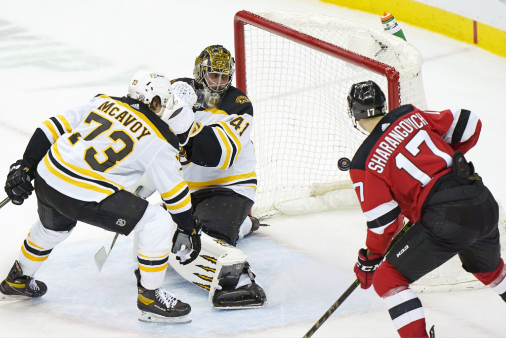 Sharangovich tied the game at 3 at 12:41 of the period with a shot from the right circle after eluding Bruins defenseman Mike Reilly at the blue line.