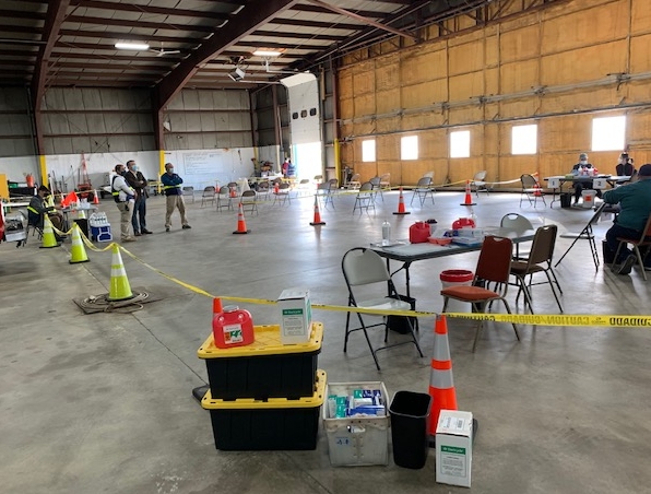 Holst said he was enjoying chatting with people and helping relay important information to officials at the hangar if, for instance, an elderly person is unable to get out of a vehicle.