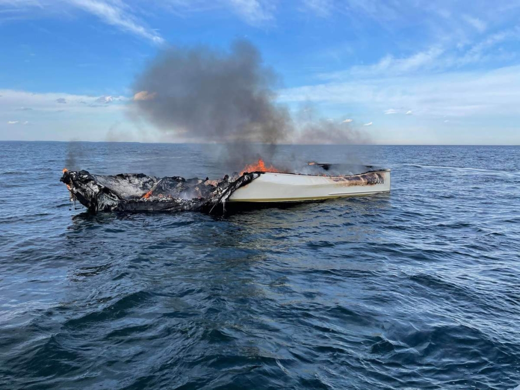 The 38-foot Prestige sank in about 145 feet of water after an engine fire burned the boat to the waterline Tuesday. Photo courtesy Todd Simmons