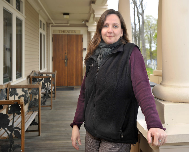 Dawn McAndrews, new producing artistic director at the Theater at Monmouth, on the veranda entrance to the theater. Gordon Chibroski/Portland Press Herald file photo