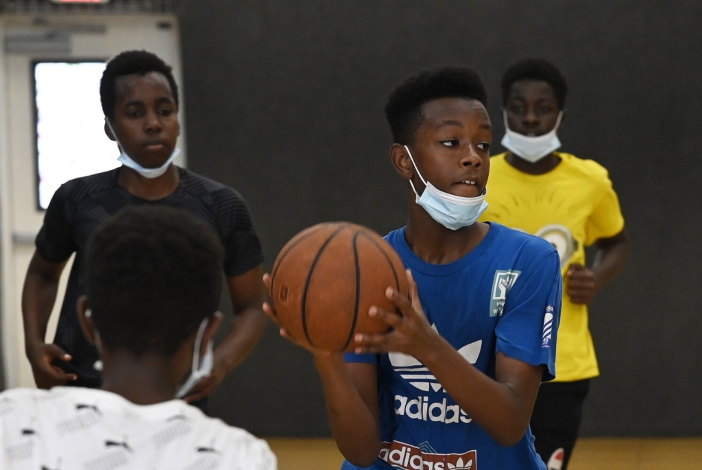 Excellent Uwizeye 14, of Westbrook looks to pass the ball during a basketball game at the after-school program at the Intercultural Community Center in Westbrook. The center will be hosting a hybrid version of its summer program. Shawn Patrick Ouellette/Staff Photographer Buy this Photo