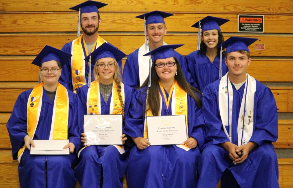 Erskine Academy Seniors of the Trimester, front from left, are Sydni Plummer, Kristin Ray, Abbygail Blair and Dylan Wing. Back from left are Harry Rabideau, Samuel York and McKayla Doyon. Contributed photo