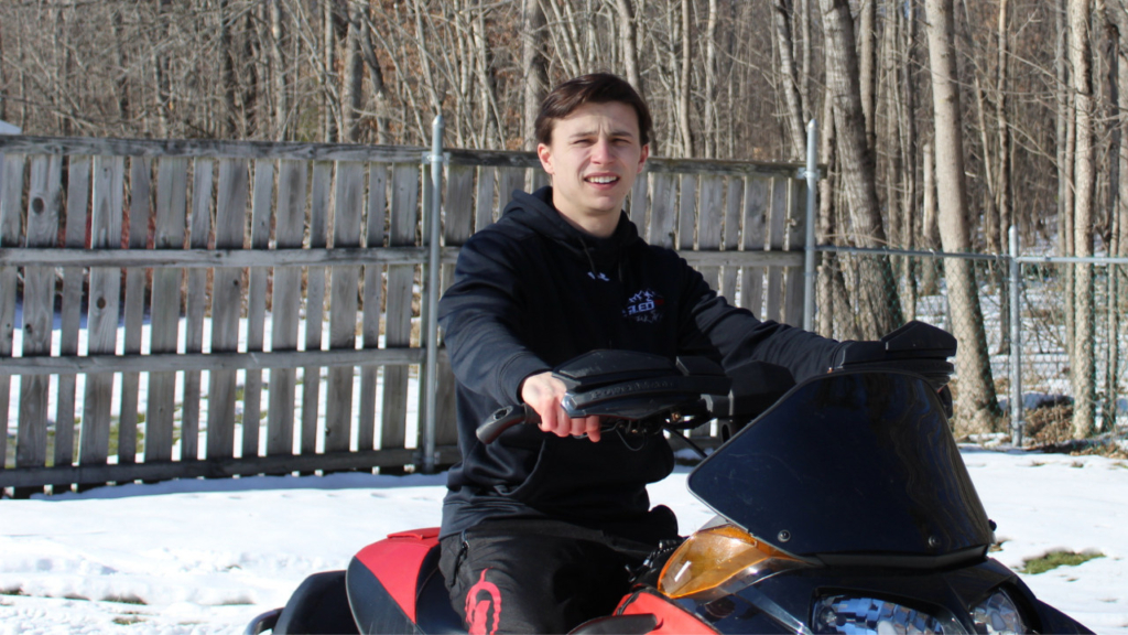 Jake Warn, a Thomas College junior from Winslow, has turned his passion for snowmobiling into a high-tech business that he created with help of the college’s Harold Alfond Institute for Business Innovation. In December, Warn, 21, launched SledTRX.com, a website catering to snowmobile riders. Contributed photo