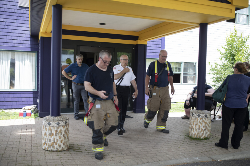 Christine Yates, who is visiting Maine with her son from Morrisville, Vermont, noticed the fire chief walking outside the building Tuesday morning around 9 a.m. and then heard the alarm warning people to evacuate. Yates said she was feeling fine, and that they were scheduled to check out of the hotel Tuesday anyway.