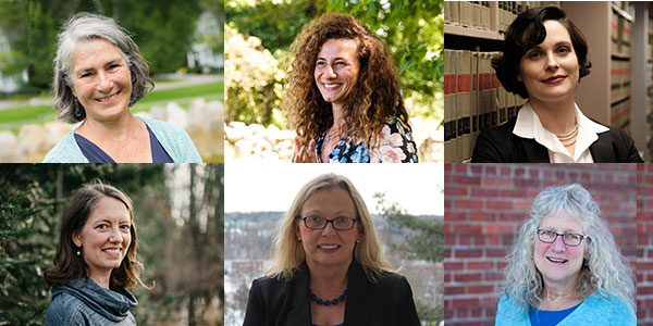 Online composite, top from left are Senate Majority Leader Eloise Vitelli, Sen. Chloe Maxmin Maxmin and District Attorney Natasha Irving. Bottom from left are Reps. Allison Hepler, Holly Stover and Lydia Crafts. Photos courtesy of office holders
