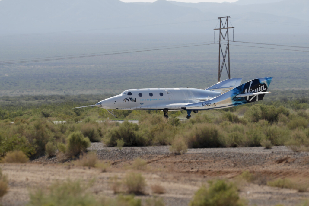 The Virgin Galactic rocket plane lands back in Spaceport America near Truth or Consequences, N.M. Andres Leighton/Associated Press