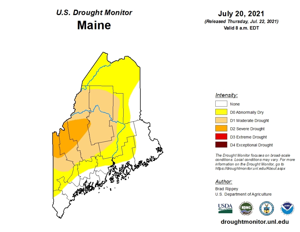 “The coast has, I guess, been lucky in a sense. … They’ve gotten quite a bit of rain over the last month or so,” said Nicholas Stasulis, data section chief of the U.S. Geological Survey and co-chairman of the Maine Drought Task Force.