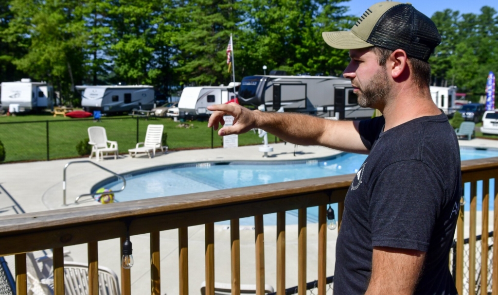 Augusta West Kampground owner Kale Malmsten talks about plans to have the field beyond the pool and other parts of the grounds decorated with holiday lights this winter. Joe Phelan/Kennebec Journal