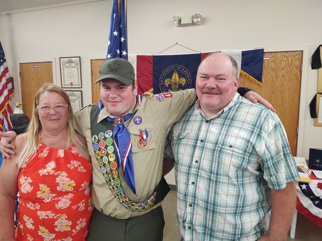 JACKMAN — Christopher Somerset received Scouting’s highest award, the Eagle Scout badge, during a July 31 ceremony at the Arno E. Hughey American Legion Post.