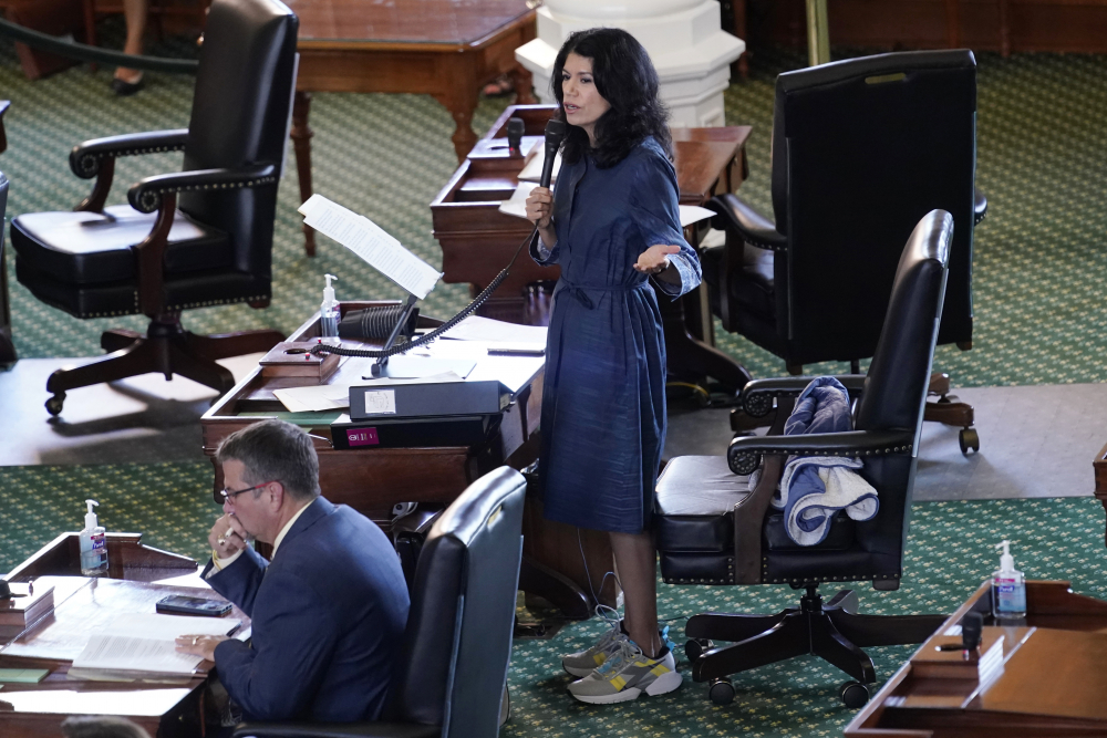 Texas State Sen. Carol Alvarado, D-Houston, wears running shoes as she filibusters Senate Bill 1 at the Texas Capitol on Wednesday. Associated Press/Eric Gay