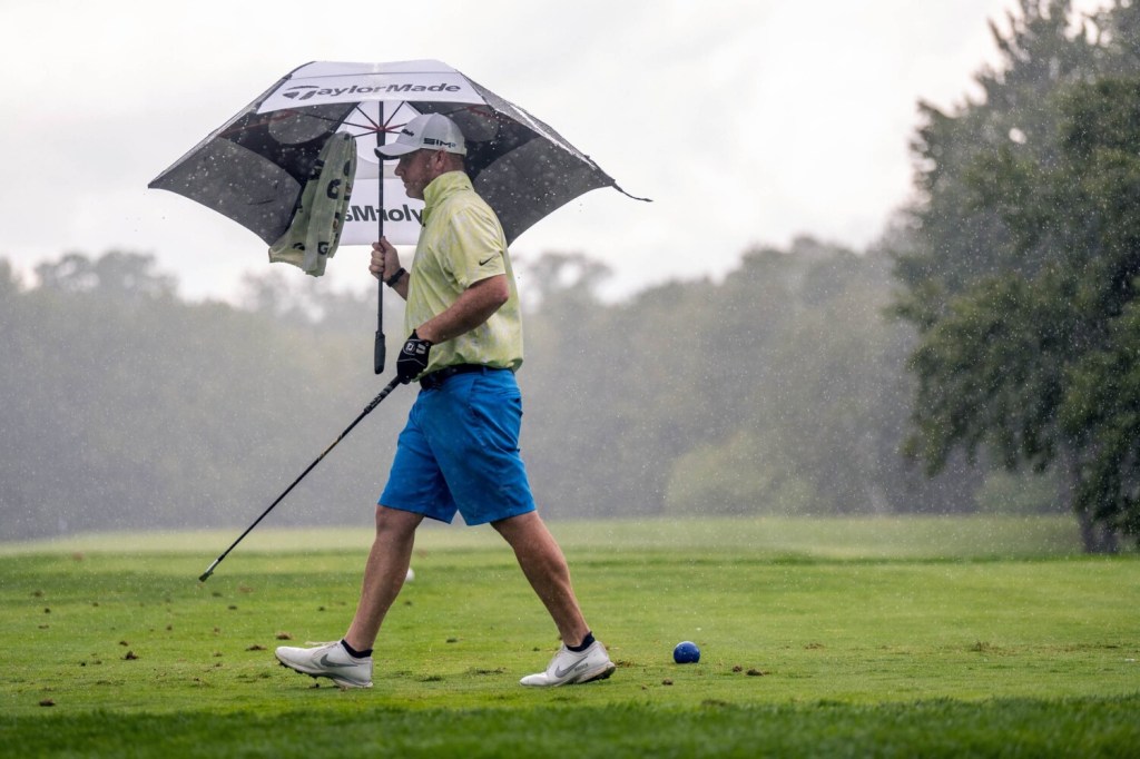 Randy Hodsdon, the Maine State Golf Association’s director of rules and competitions, said tournament officials checked radar and consulted with WCSH meteorologist Jessica Conley before making the decision to call the tournament at 4:55 p.m. Moments after the remainder of the Maine Event was canceled, the heaviest rain of the day began to fall.
