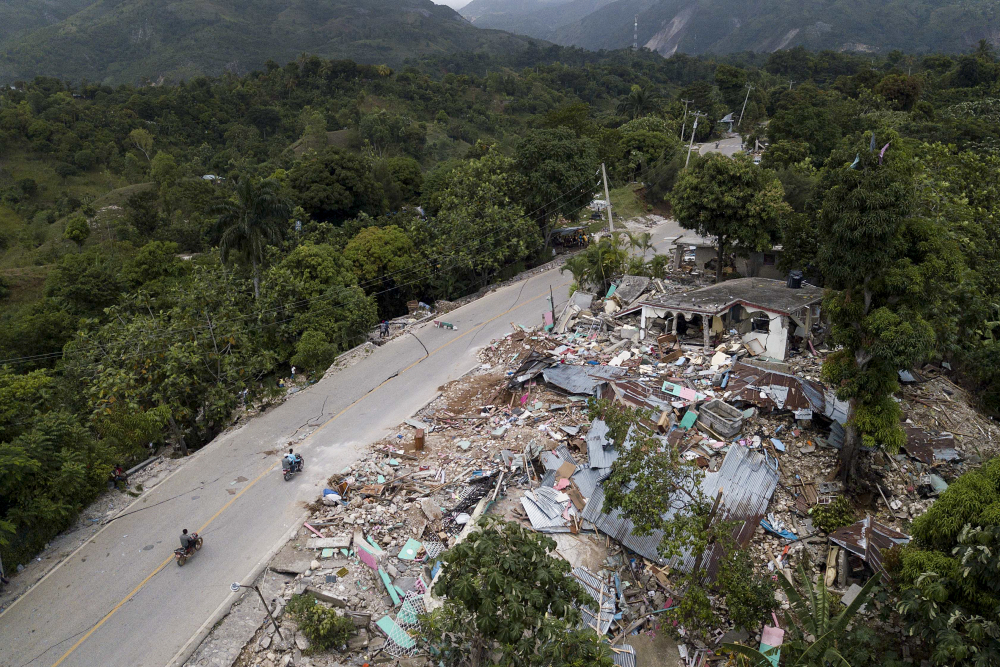 Homes lay in ruins along an earthquake-damaged road Wednesday in Rampe, Hait, four days after 7.2-magnitude earthquake hit the southwestern part of the country. Matias Delacroix/Associated Press