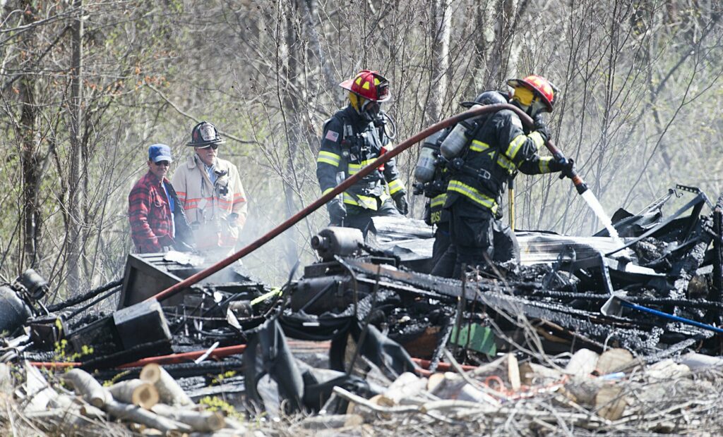 Fairfield Fire Chief Duane Bickford, left center, speaks with a property owner May 11, 2019, as firefighters put out the remaining flames of a fire that destroyed a workshop in Fairfield. A site for a new firefighting training facility is being prepped in Fairfield. Construction is expected to start in fall. Michael G. Seamans/Morning Sentinel file