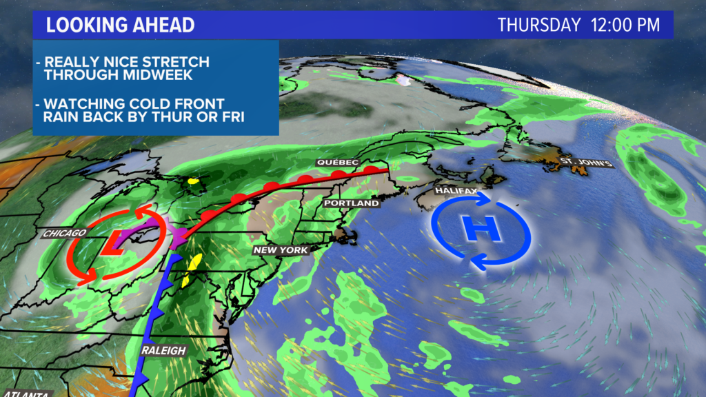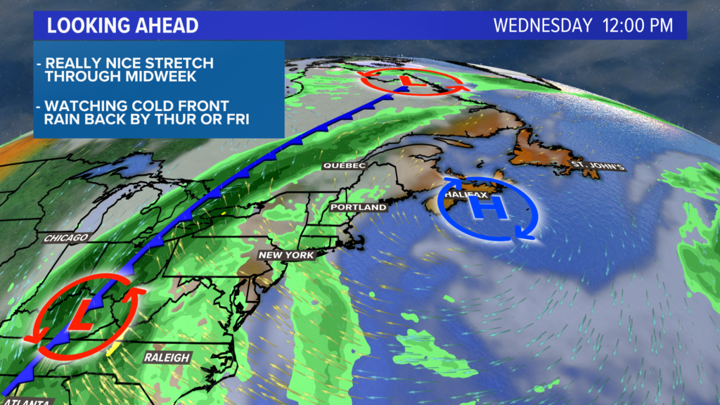 High pressure lingers on Tuesday, bringing another sunny day with highs near 70.