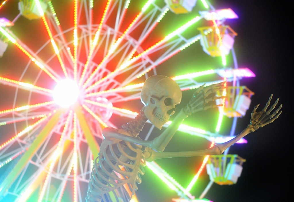 A large skeleton near the Ferris wheel on the midway Thursday at the Farmington Fair. The weeklong fair ends Saturday. Rich Abrahamson/Morning Sentinel