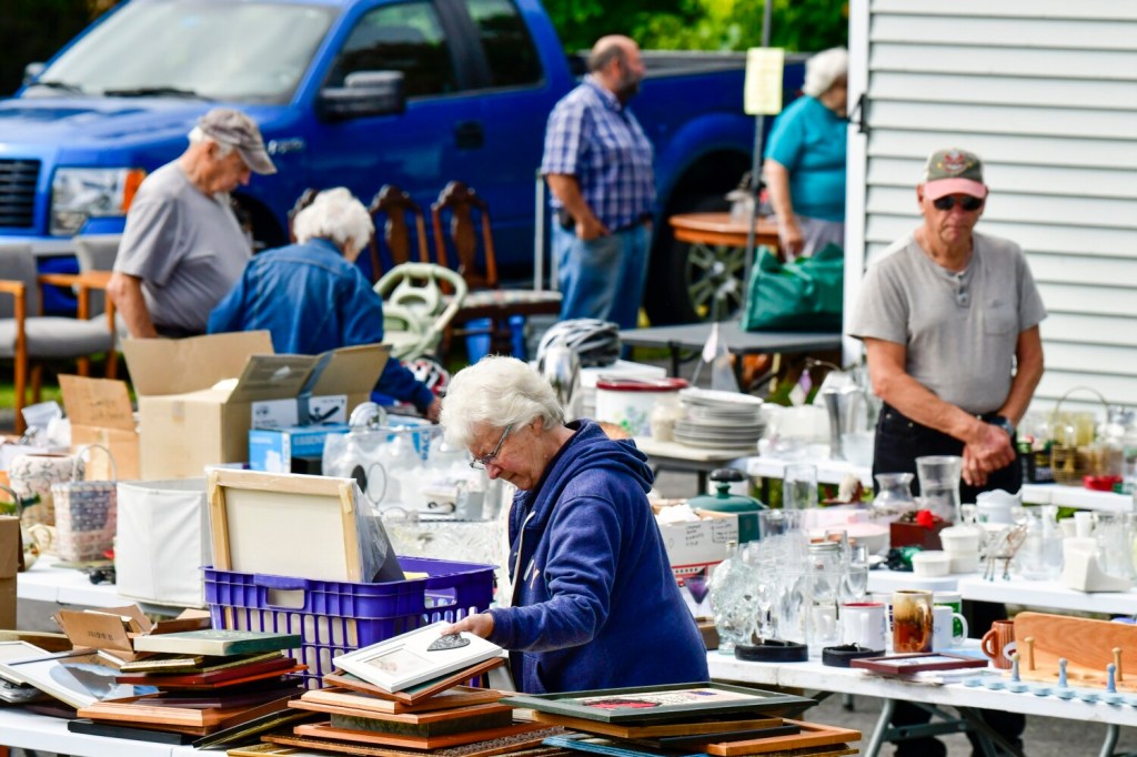 People shop at the Monmouth Lions Club yard sale held Saturday during AppleFest at the Monmouth Museum. Joe Phelan/Kennebec Journal
