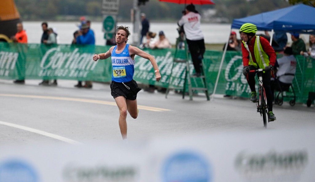 Terry wore a singlet that read Blue Collar instead of a track club, a tongue-in-cheek reference to the adversity facing runners from northern climates such as Maine. Willingham usually finished ahead of Terry in their college days and had “kind of cooked” him on a long training run recently, so thoughts of victory Sunday didn’t materialize until late in the race.