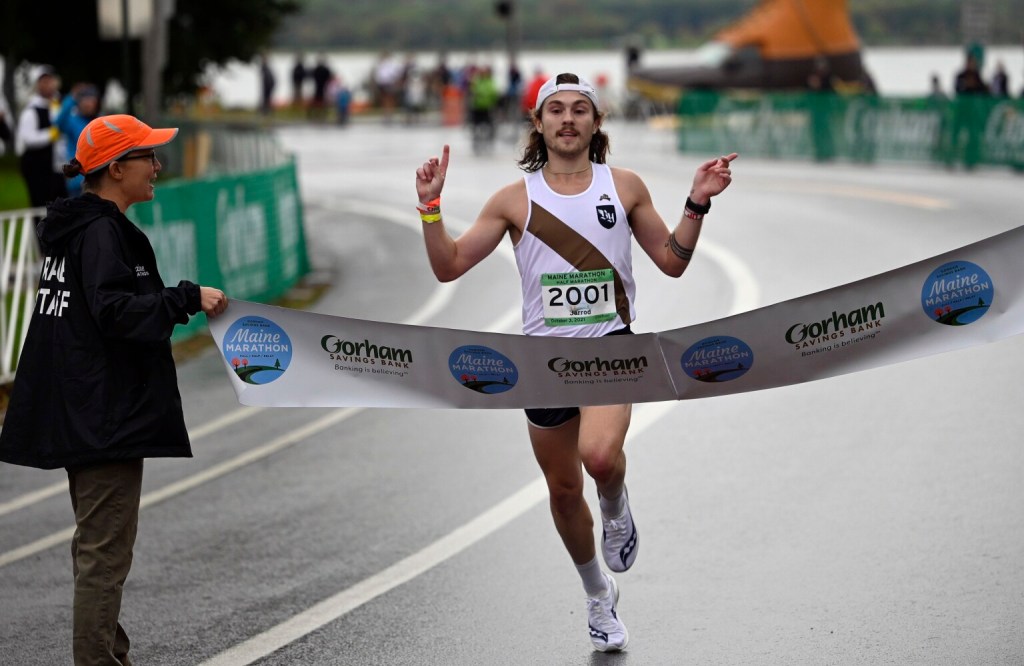 Picking his way between runners finishing the half marathon, the 24-year-old Terry spotted former high school and college teammates in the crowd at the Preble Street intersection, pointed to them and clenched his fists in triumph. The congestion from half marathoners coupled with the neighborhood streets had left him in the dark of his status in the race until reaching Payson Park.