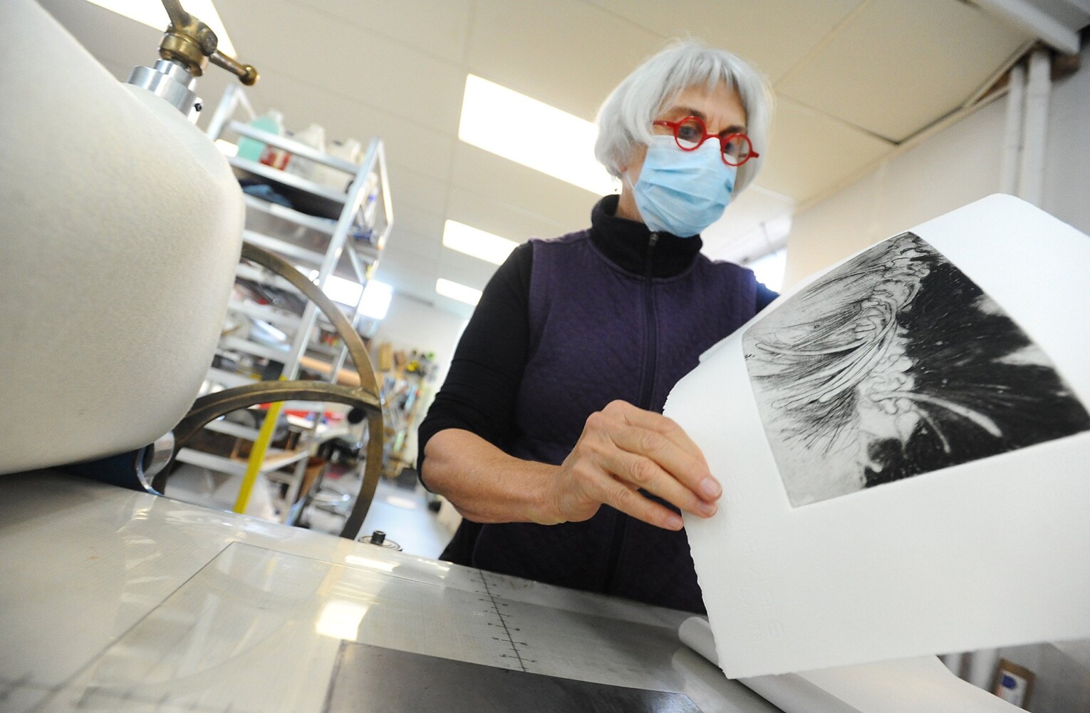 CTS Fine Art Press is an open-access facility where artists can work independently on their own schedule — they even get their own keys. Fourteen artists currently work in the space. There, they often share ideas, techniques and information, and collaborate with other printmakers.