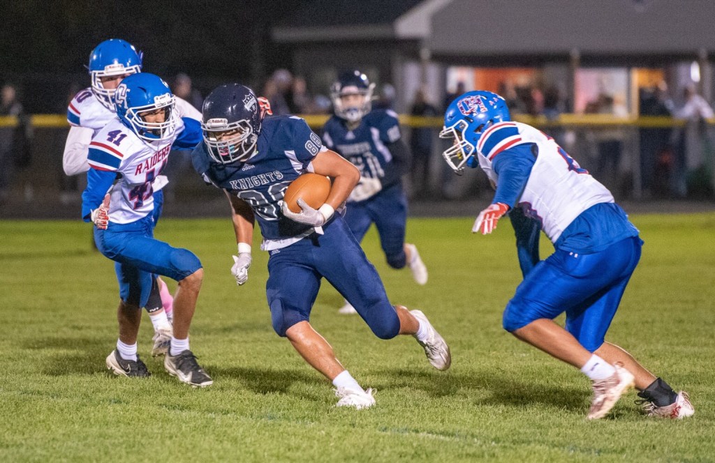The Knights’ responding drive to Thompson’s second touchdown was a three-and-out which featured three straight incomplete attempts to Hunter Gibson, who was stymied by Brandon Giguere each time.