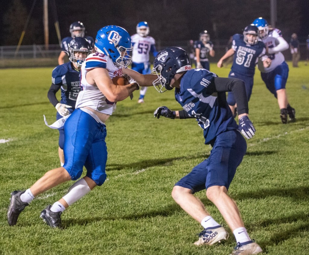 “We came in with a goal to establish the running game. We threw the ball a lot last game,” Oak Hill coach Chad Stowell said. “We thought probably they were going to be prepared for that, when we attacked Bucksport through the air, so we kind of wanted to establish the running game.