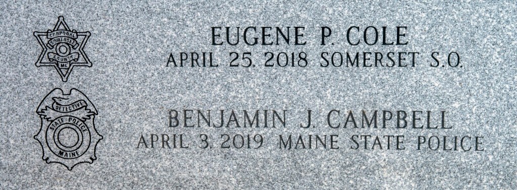 AUGUSTA — Maine State Police Detective Benjamin J. Campbell was the latest name to be added to the Maine Law Enforcement Officers Memorial, honored Tuesday morning along with the 86 other fallen officers recognized at the monument.