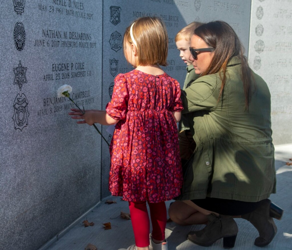 The ceremony took place at 10 a.m. at the granite memorial, located on State Street near the Maine State Capitol, which is dedicated to Maine law enforcement officers killed in the line of duty.
