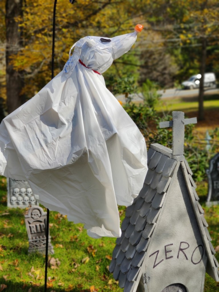 “I wanted a bunch of ‘Nightmare Before Christmas’ blowups, but I couldn’t afford them,” she said. “I made Zero’s house out of the styrofoam from the box my child’s old stroller came in.”