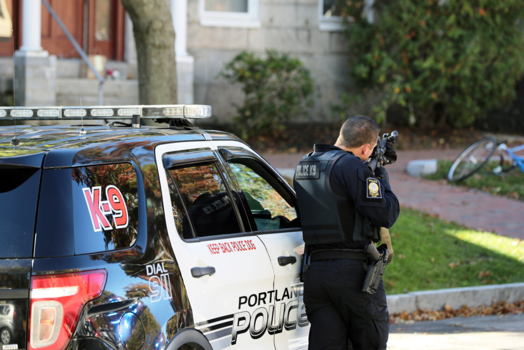 A heavy police presence was at State and Danforth streets in Portland on Sunday afternoon. Ben McCanna/Staff Photographer