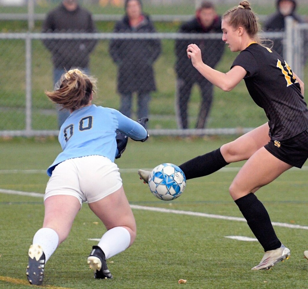 It was on Maranacook’s defense to hold, and the Black Bears did. New keeper Kayleigh Kubicki made four saves, and though Traip earned corners in the 70th and 72nd minutes, Maranacook’s core of stopper Grace Dwyer, sweeper Sophie Tweedie and fullbacks Winter Webb, Alissa Michaud and Schmidt didn’t let anything through.