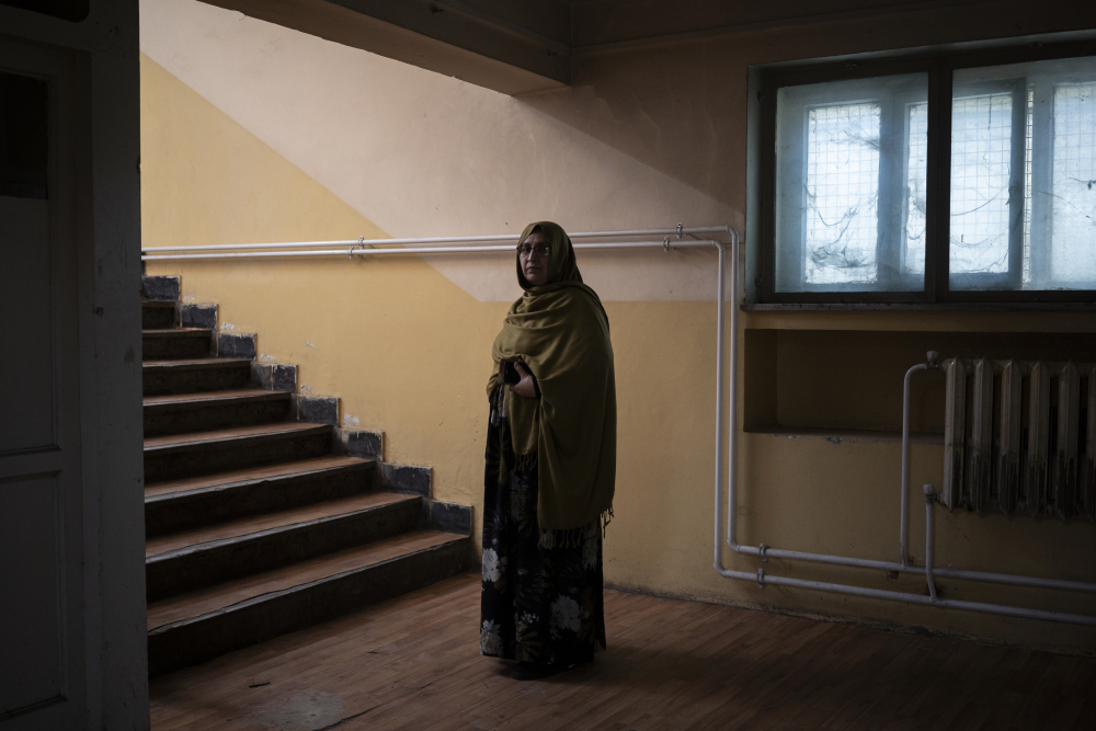Karima Mayar Amiri poses for a photograph outside her office in Kabul, Afghanistan, on Oct. 31. She is one of the few women still able to retain a leadership position within the Taliban’s bureaucracy. Bram Janssen/Associated Press
