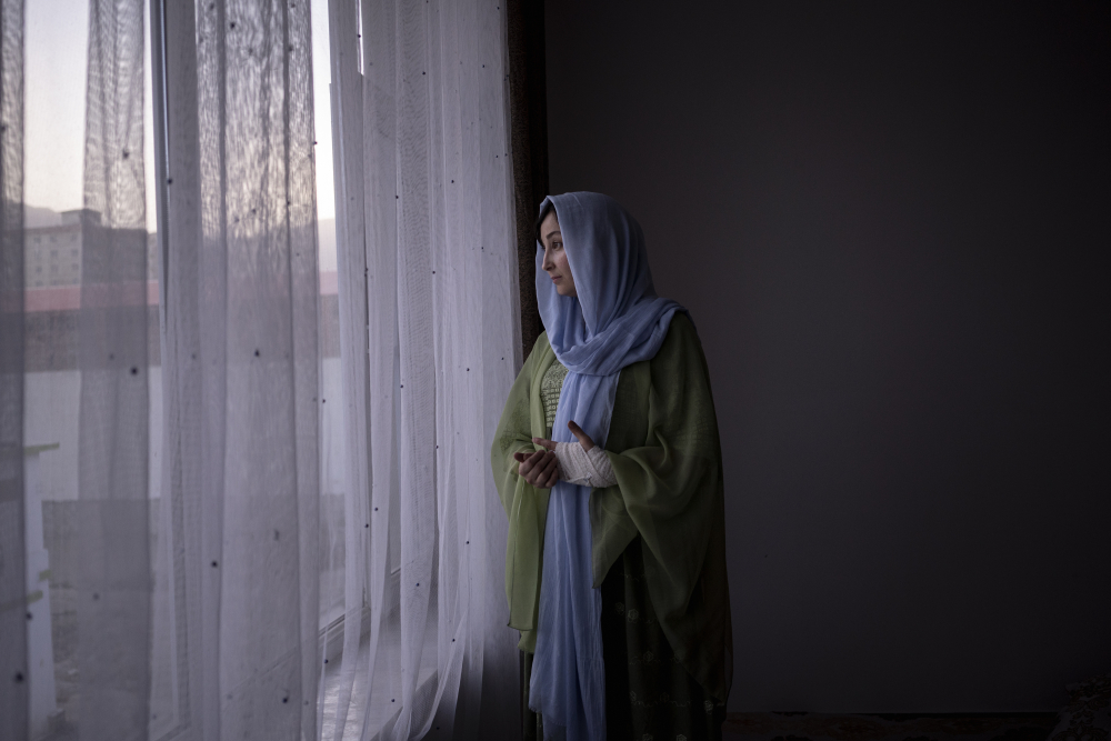 Rishmin Juyunda looks out of a window in Kabul, Afghanistan, on Oct. 22. A rights activist, she is part of an underground network determined to fight repressive Taliban policies that limit the freedoms of women. Bram Janssen/Associated Press