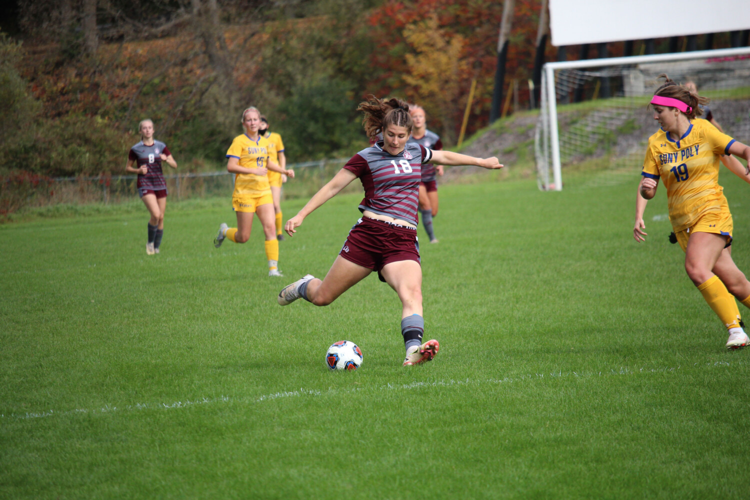 Messalonskee graduate McKenna Brodeur returned for a final season with the UMaine-Farmington women’s soccer team, leading the Beavers with 14 goals and eight assists. She was named the North Atlantic Conference Player of the Year. Contributed photo/University of Maine at Farmington Athletics